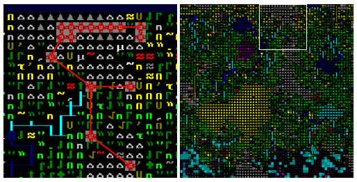 This a small region world (65x65) with patchwork settings (resulting in 1565 unique regions). At year 500, it has entered the Age of Heroes which means that most or all of the megabeasts are dead.