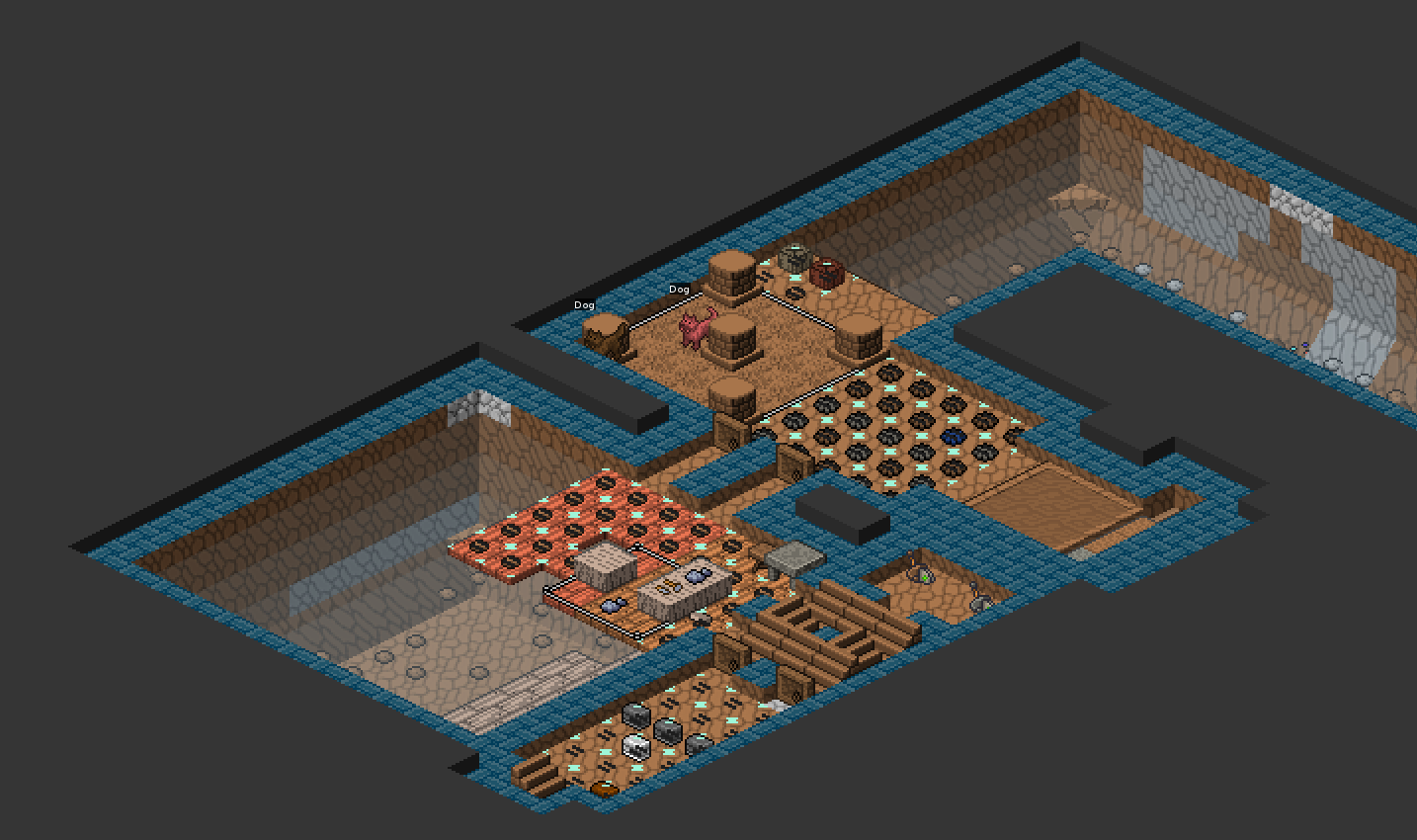 Since the caravan drawbridges have been hooked up to levers, we have constructed the trade depot inside and linked that area to the main stairwell.