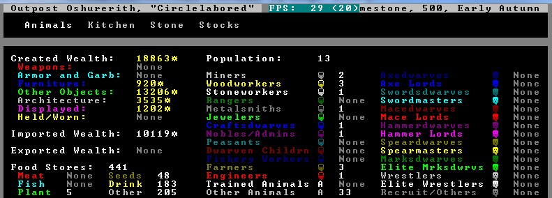 At the moment, we are waiting for the trade caravan to arrive within the next few weeks. Our mechanics are still making mechanisms for trade and we have also been making rock crafts. Most things which were in the wagon are now safely stored below ground.