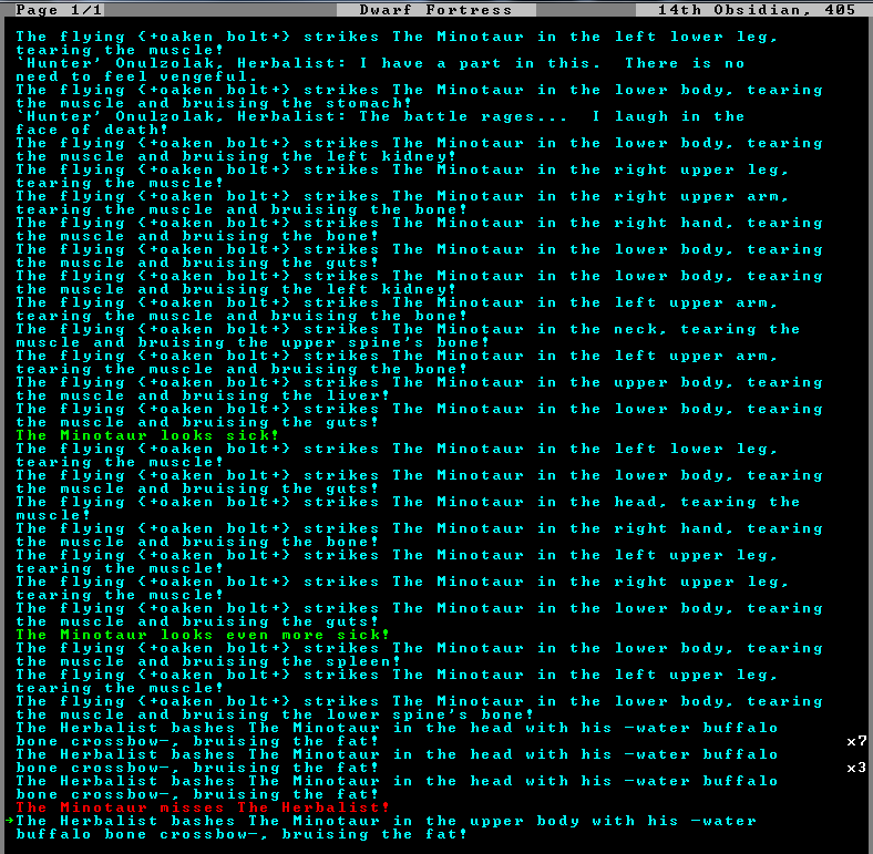 Due to the weapon of choice being a wooden crossbow, this is going to be a long battle. And if the minotaur wakes up, it may be a short battle for the hunter. And, no such luck. Perhaps with a metal crossbow things might have turned out differently once he ran out of ammo.